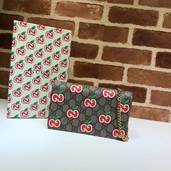 Billetera de carcasa de cadena mayorista de Gucci con impresión GG Apple