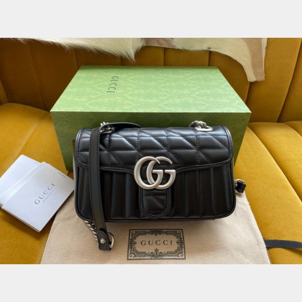 Réplicas Gucci para la venta GG Marmont Matelassé Mini Bolsa 446744 Cuero negro