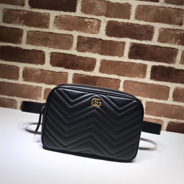 AAA+ Gucci IMPRESA GG Marmont Matelassé Belt 5233380 Bolsa negra