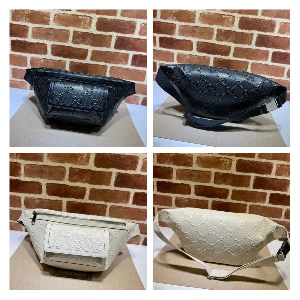 Gucci barato 645093 cinturón en relieve GG bolso falso negro/blanco