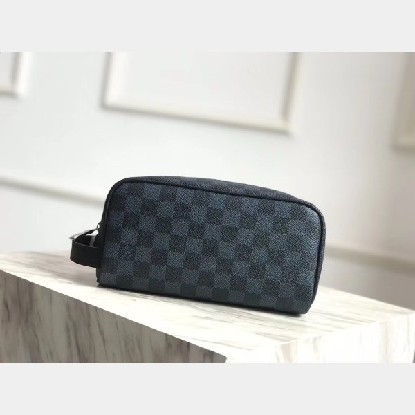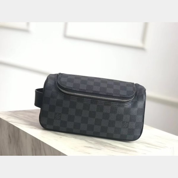 Diseñador Louis Vuitton Toiletry Pouch Damier Graphite Canvas N47625 Gray