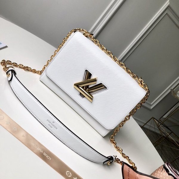 Bolsos de cuero Fake Louis Vuitton Twist MM EPI M50280 en blanco
