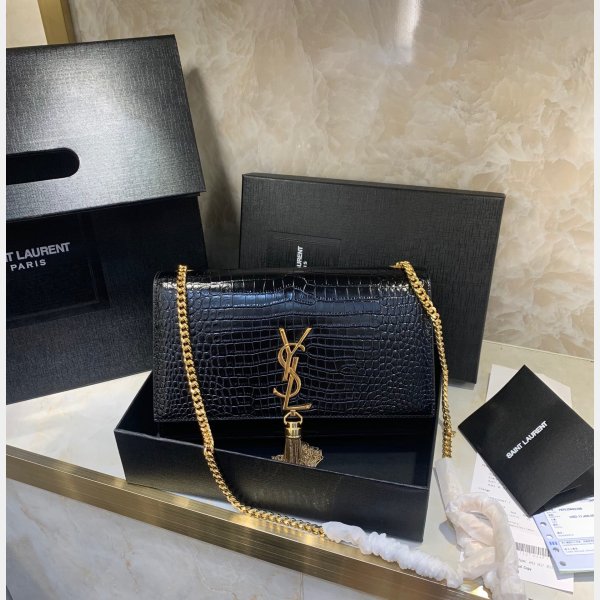 YSL Patrón de cocodrilo de Saint Laurent de Saint Bolsa negra de 24 cm