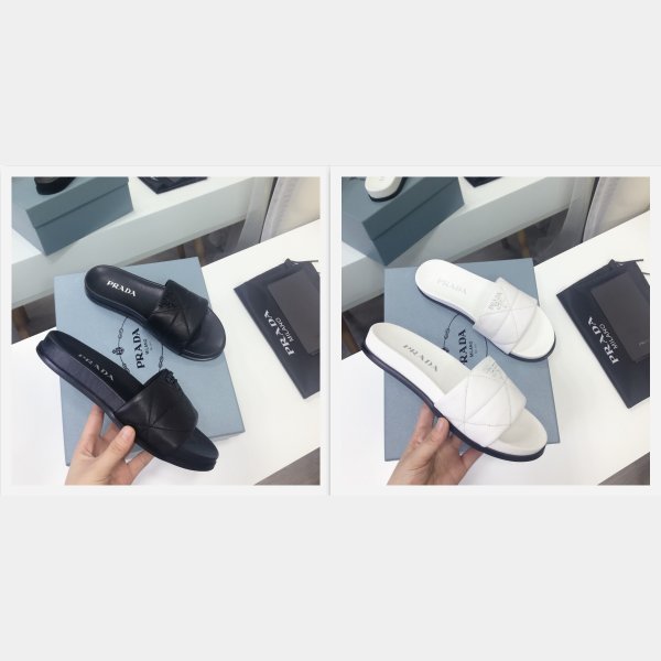 2021 Diapositiva de cuero acolchado Prada