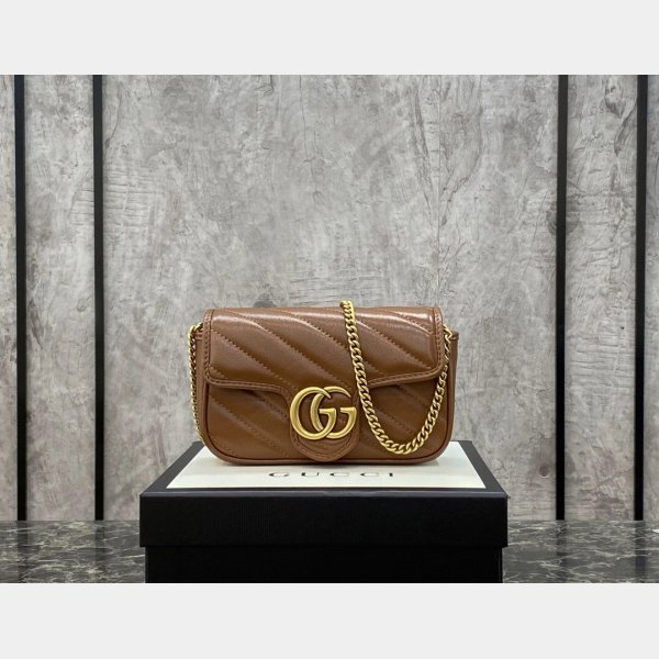 Gucci Réplicas GG Marmont 476433 Matelassé Super Mini Brown Bolsa