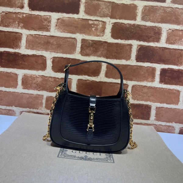Copiar el diseñador de Gucci Jackie 1961 Lizard 675799 Bolsa negra
