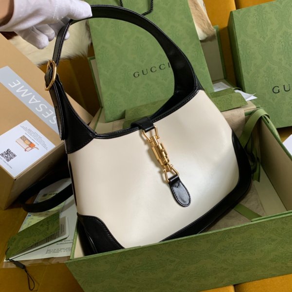 Réplicas Gucci 636709 Jackie 1961 Cuero pequeño Hobo White/BLCK Bolsa