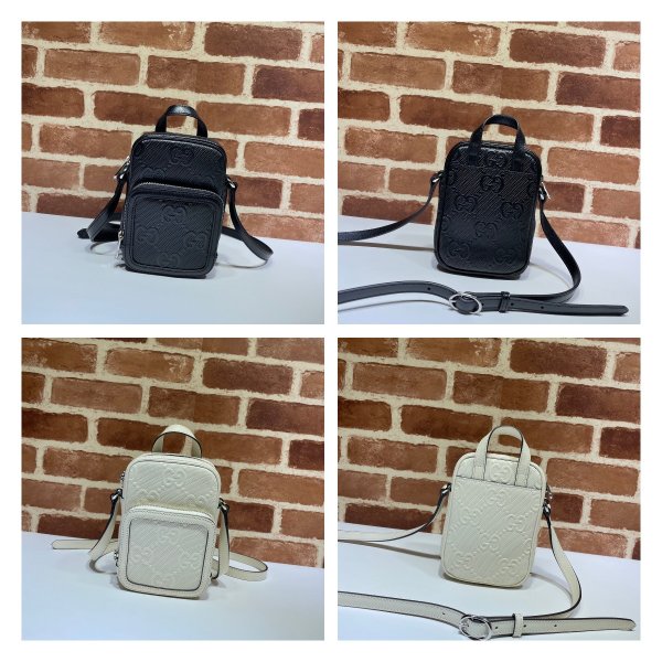 Gucci imitación 658553 Mini bolso en relieve GG de lujo en cuero negro/blanco