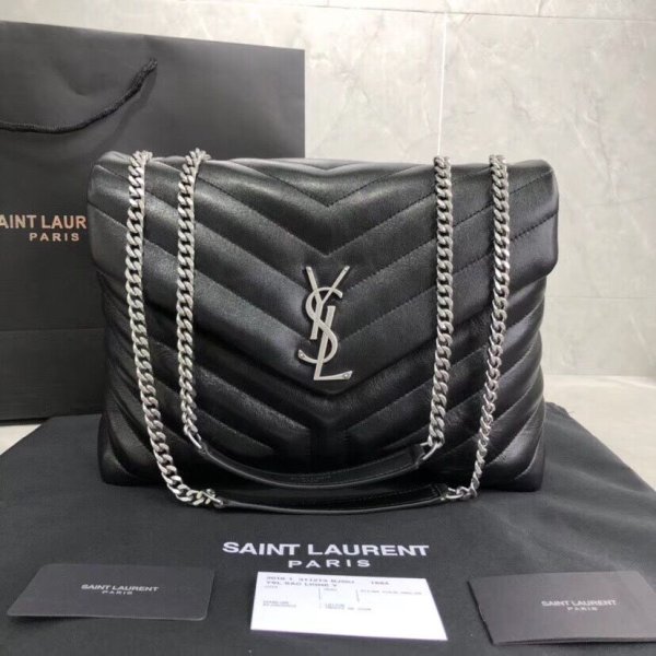 Réplicas al por mayor YSL de 24 cm Gun Metal Metal Bolsas negras