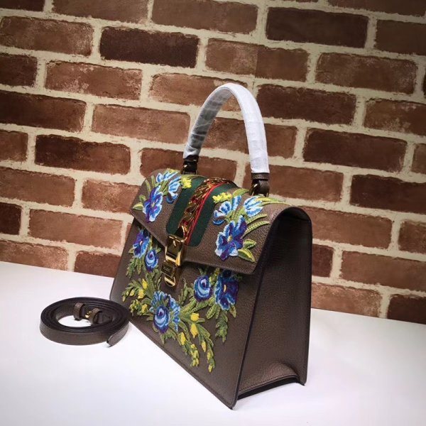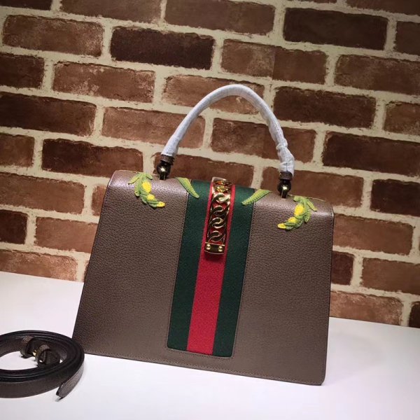 replica gucci sylvie leather top handle bolsas black 431665