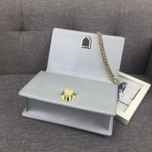 Diorama flap bolsas in metallic calfskin with micro-cannage motif