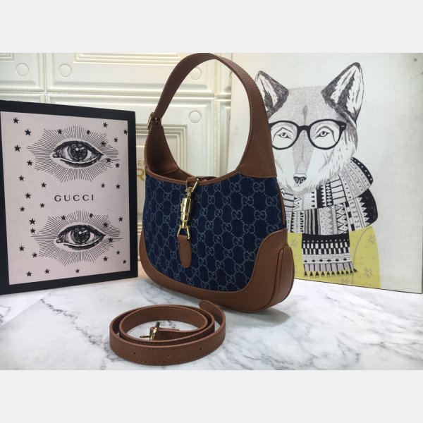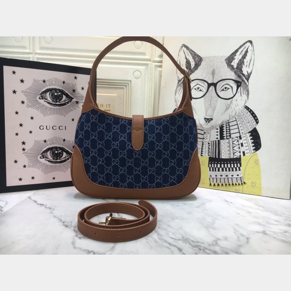 Dark Blue y marfil Eco Washed GG Jacquard Denim