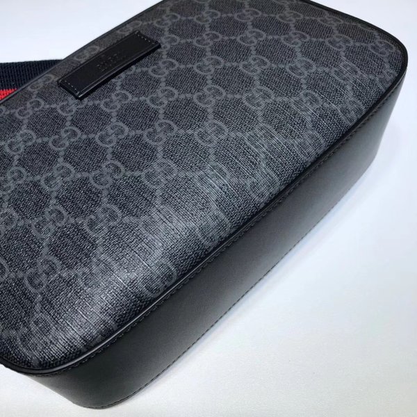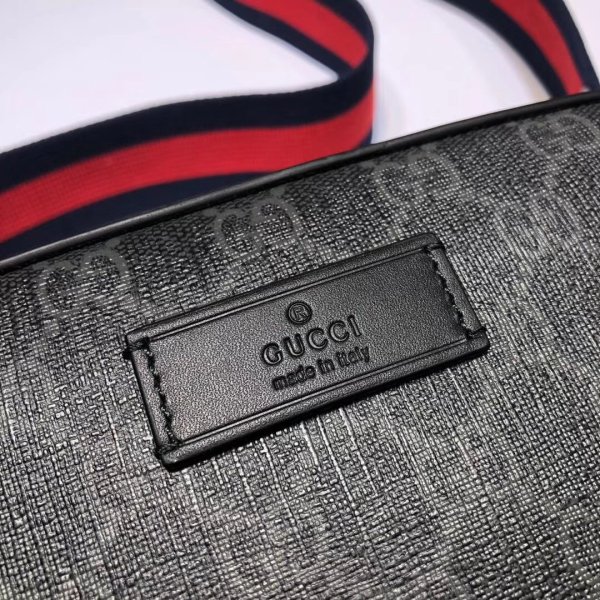 ty Small Shoulder bolsas, diseñada con una forma rectangular suavemente estructurada que recuerda los casos de cámara tradicionales, en GG Supreme Canvas. Presentado en la combinación negra y gris del motivo de la casa, la bolsa se completa con una amplia franja de nylon en la red azul y roja. Hardware tonificado