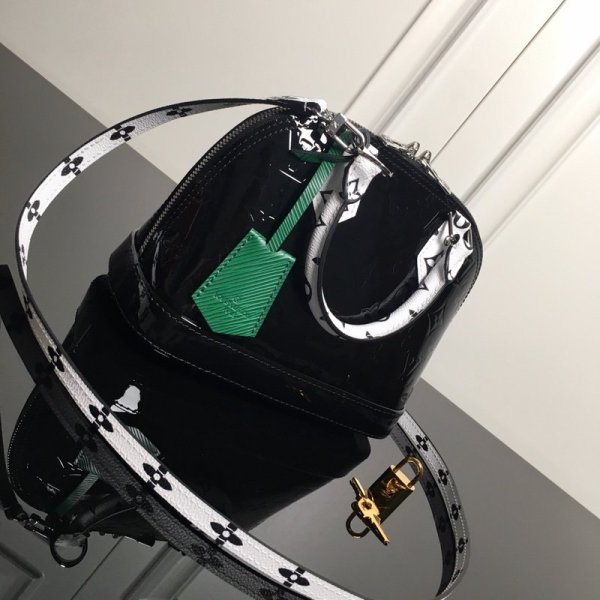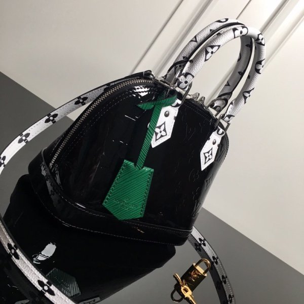 Louis Vuitton M90447 LV Alma BB bolsas Denim Raw Black The Alma BB handbolsas in Monogram Vernis gets a Pop-inspired twist for Summer 2020