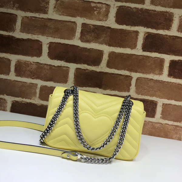 La pequeña bolsa de hombro de la cadena de marmont GG tiene una forma suavemente estructurada y un cierre de aleta de gran tamaño con hardware doble G. La correa de la cadena deslizante se puede usar múltiples formas, cambiando entre un hombro y una bolsa de mango superior. Hecho en cuero Matelassé Chevron con un corazón en la espalda. Matelassé Black Matelassé de cuero con corazón. Hardware de tonos de oro antiguos.