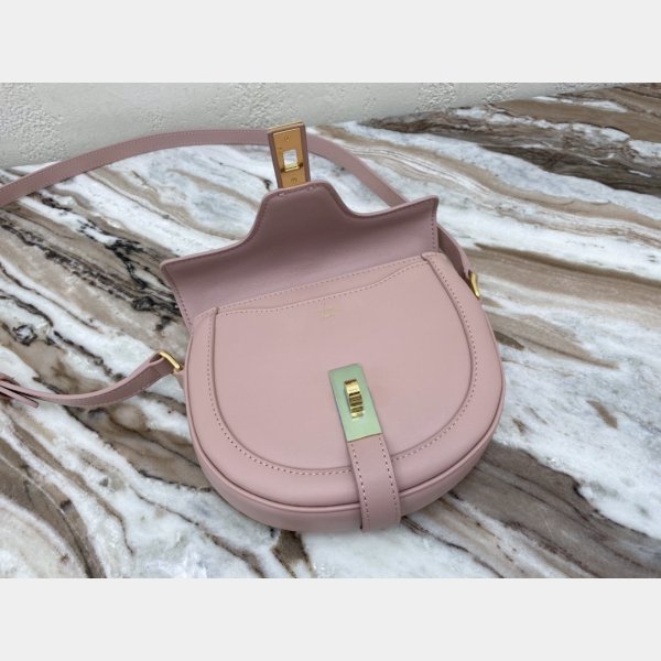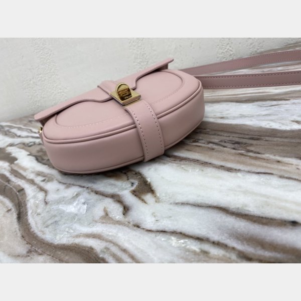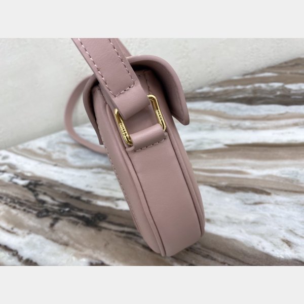 Color rosa. Tamaño: 19 cm x 17 cm x 6 cm. Celine Ladies Small Besace 16 bolsas en becerro satinado