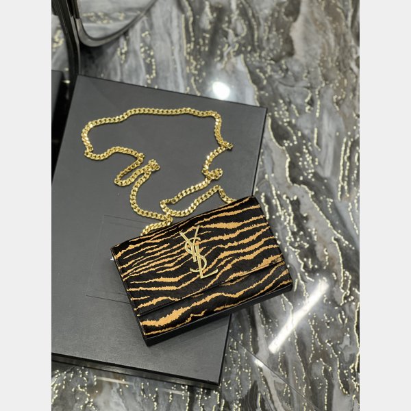 saint laurent bolsas de hombro falso monograma decorado con un patrón de tigre icónico YSL. , One Flat Pocket